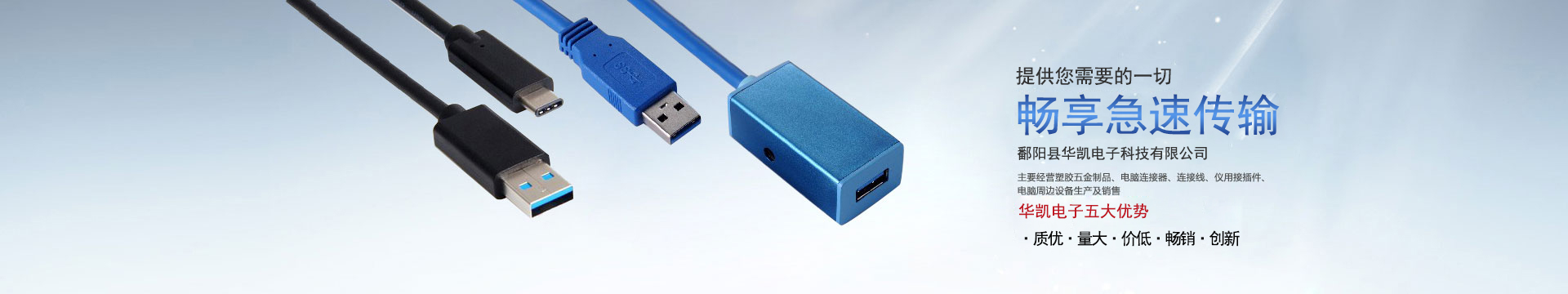 鄱陽縣華凱電子科技有限公司位于鄱陽縣城北工業園區,成立于2008年06月,主要經營塑膠五金制品、電腦連接器、連接線、儀用接插件、電腦周邊......